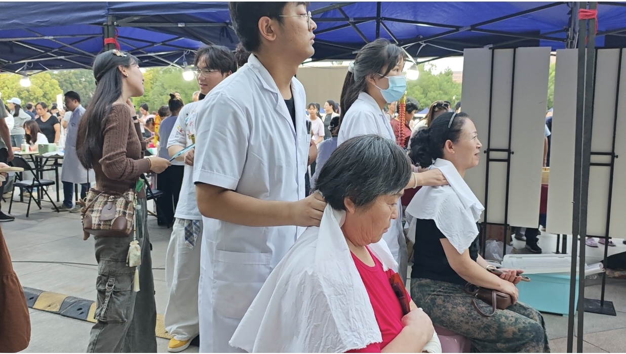 拔罐、推拿体验区是最热闹的地方之一,排队体验的市民络绎不绝。很多年轻人也是第一次尝试拔罐,直呼“没想到这么舒服!”“肩颈顿时轻松多了!”